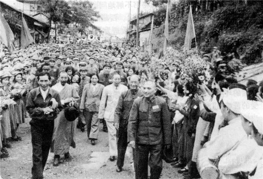這一天,從康定東大門、南大門和北大門三個(gè)方向,不斷有馬隊(duì)排著長(zhǎng)隊(duì)進(jìn)入康定城——沿茶馬古道,以劉格平為團(tuán)長(zhǎng)的中央訪問(wèn)團(tuán),以及西康省委書記、省人民政府主席廖志高,軍區(qū)代司令方升普等領(lǐng)導(dǎo)同志一行在人民解放軍的保衛(wèi)下來(lái)了。他們是代表中央、中央人民政府、中央領(lǐng)導(dǎo)、西南局、西南軍政委員會(huì)、西康區(qū)黨委和西康省人民政府向康區(qū)各族人民、全體干部和解放軍指戰(zhàn)員表示慰問(wèn)和祝賀的;他們向自治區(qū)人民政府帶來(lái)了毛澤東主席題詞“中華人民共和國(guó)各族人民團(tuán)結(jié)起來(lái)”的錦旗,以及劉伯承、賀龍、鄧小平同志贈(zèng)送的“團(tuán)結(jié)各兄弟民族共同建設(shè)新西南并鞏固西陲國(guó)防”的錦旗。